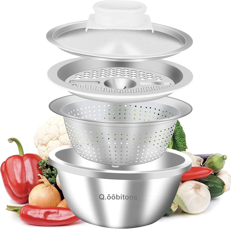 Product Details :4 In 1 Stainless Steel Drain Basket Vegetable Cutter