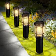 - This solar pathway light features an unique retro look and upgraded filament bulb that greatly meets your different lighting and decoration needs. The solar garden lights charge during the day and turn ON automatically at night. Bright warm white landscape lighting to creates a romantic and warm atmosphere for your garden and pathway.
