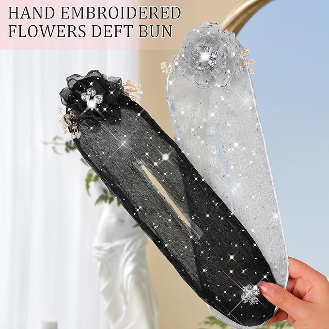 - FLOWER HAIR BUN ROLLER] Brand new and upgraded hair accessories, you can quickly style your hair in one minute! Elegant flowers and mesh match together to make you look more beautiful!
