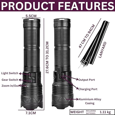 Powerful LED Flashlight Super Bright Spotlight Long Range Zoomable Lantern Emergency Torch Outdoor Tactical Light.