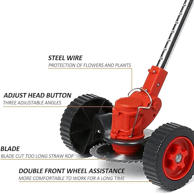 - Folding design: Folding design and Equipped with detachable wheels, Easily converts from lawn trimmer to wheeled Lawn Mower.weeding is as easy as walking, improving work efficiency, saving time and effort
