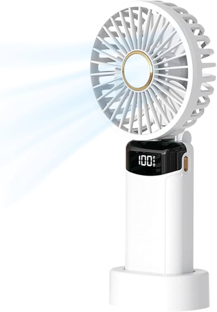 - ✵USB Charging: This handheld fan can be folded and used as a desk fan or attached to a stroller. It has a USB mini port for easy charging and a power and wind speed display for convenience. Enjoy a refreshing breeze anytime, anywhere.