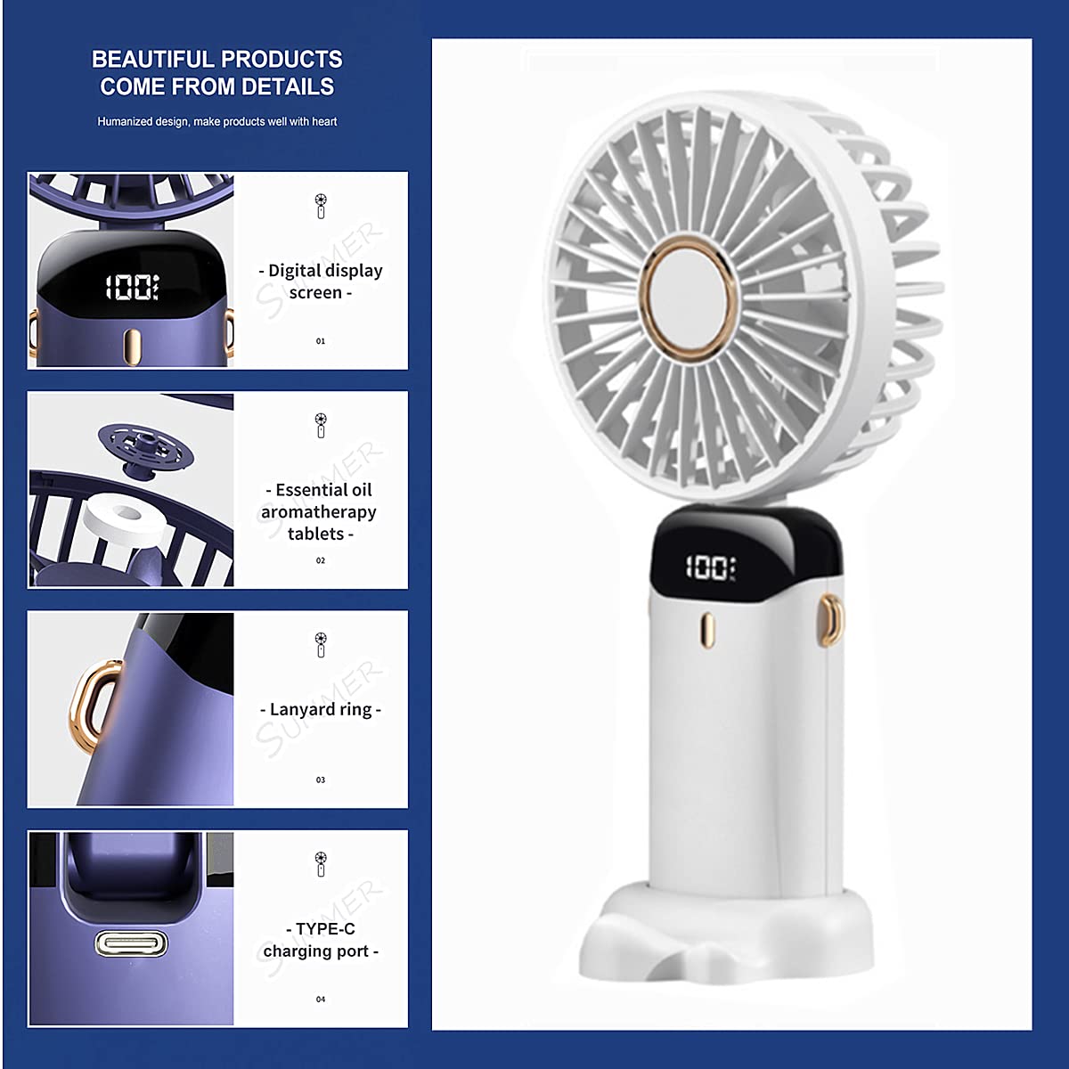 - ✵Noise-Free Design: This handheld fan is equipped with a mute channel and a noise reduction system that reduce the noise to 12dB. It can filter 70% of the noise and give you a peaceful and comfortable experience.