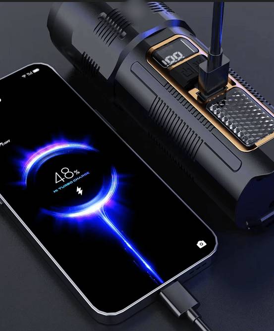 This X-55 LED Multifunction Flashlight comes with a some amazing light features such as you can make the light small, large & disco light. With this flashlight you can charge any mobile as a power bank through the USB port. It features a large 1800mAh battery USB Type-C Charging that can give a using time up to 8-12 hours in a single charge. Also, the high quality metal material and 500 Lumens light makes it more durable and gives a nice using performance.